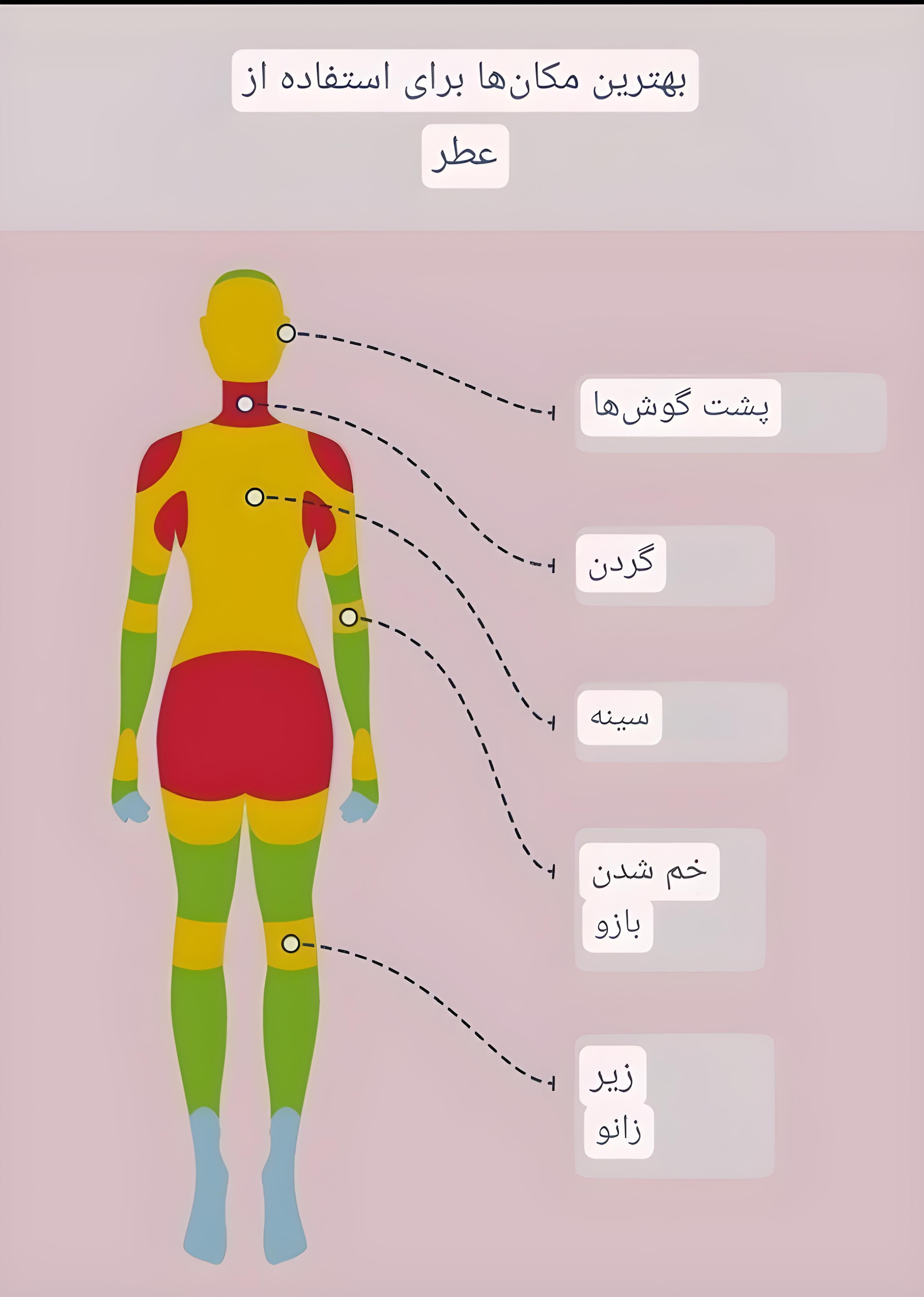 عطر را روی نقاط نبض بدن، مانند گردن یا مچ دست بزنید.