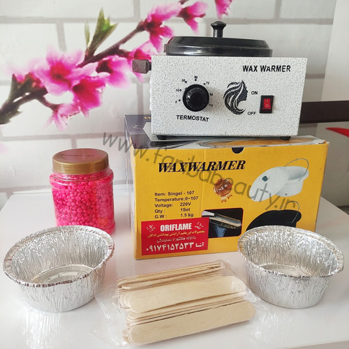 پک دستگاه وکس و شمع(شامل دستگاه شمع/کاردک چوبی/وکس مرواریدی/کاسه فویل)